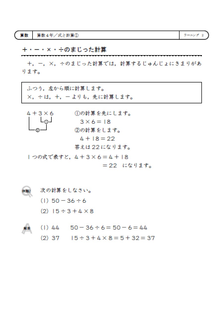○算数の基礎計算力の向上。