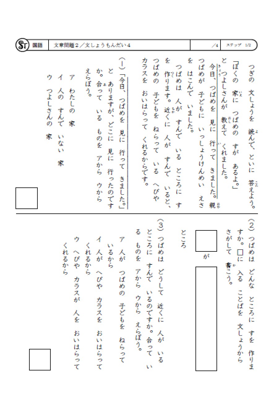 ※国語:文章問題(小2相当)