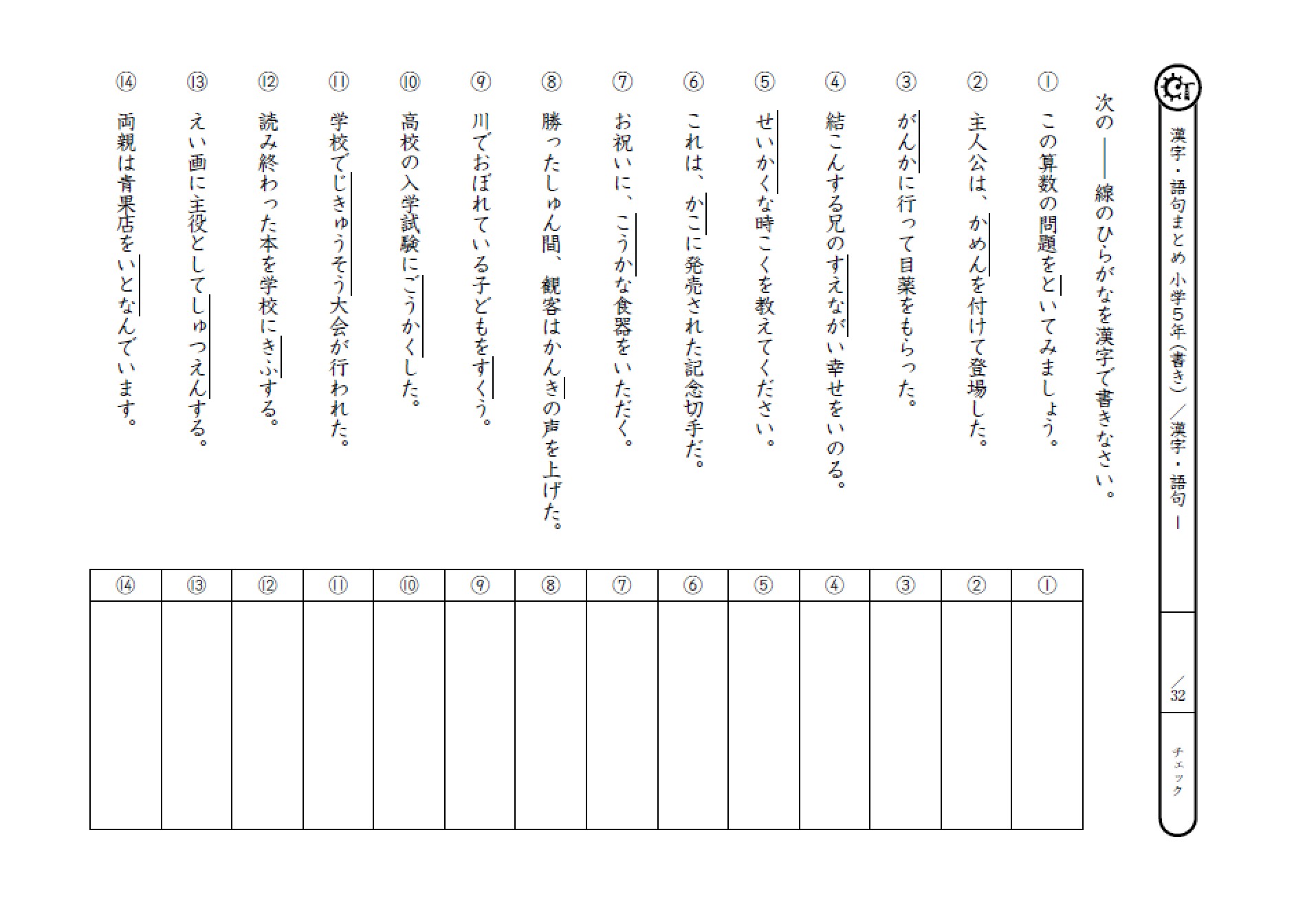 ※漢字テスト(小5相当)